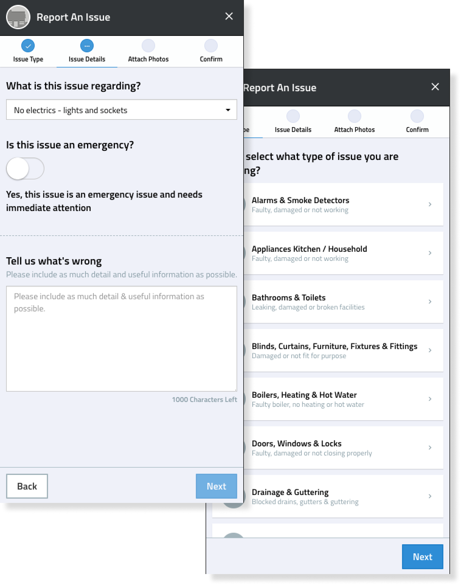 As the work progresses we keep you informed. You can use the messaging system to keep us updated of any extra details. Reporting issues properly ensures you don’t incur costs from unreported issues becoming worse and causing more damage that you may become liable for.